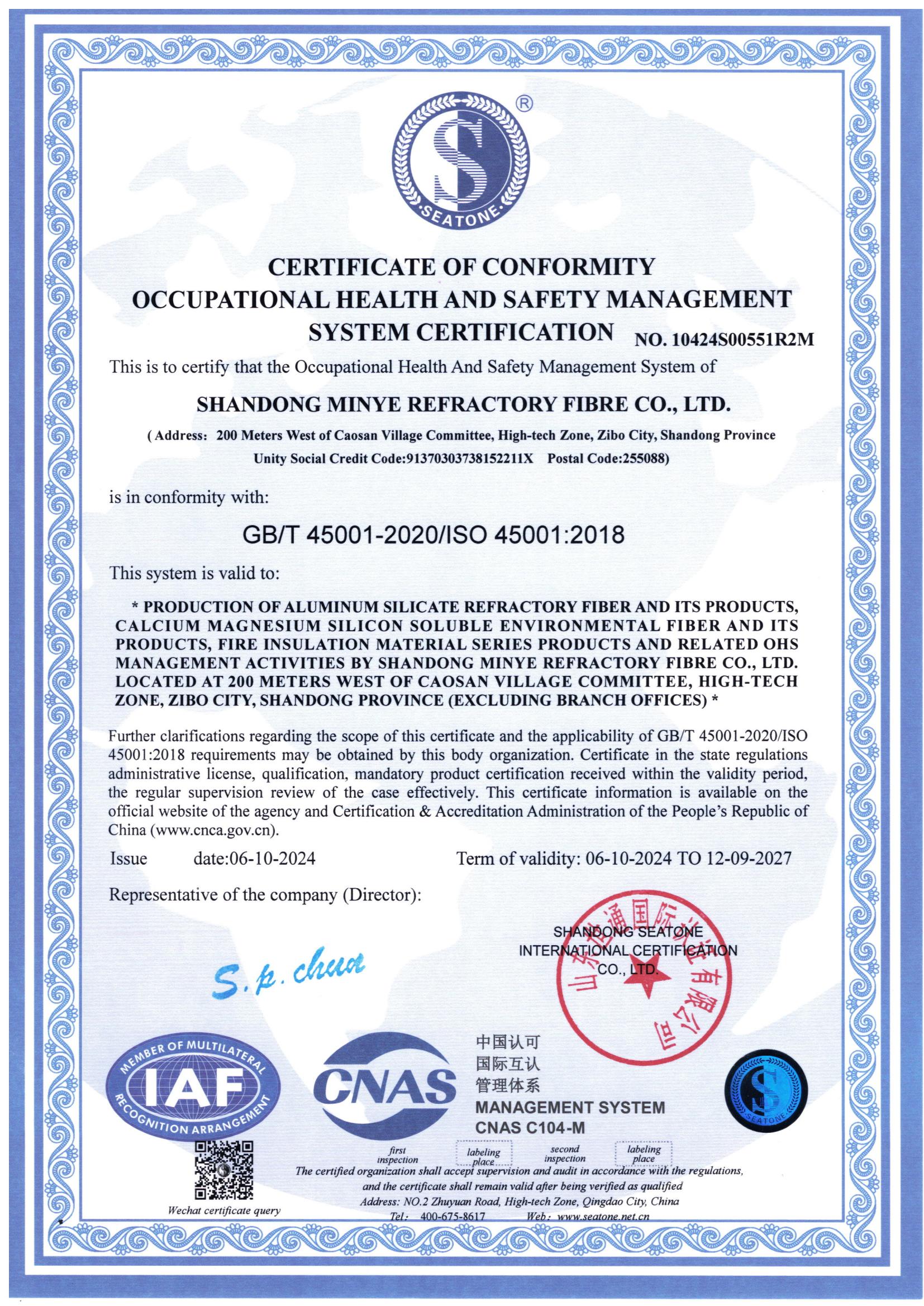 • 職業(yè)健康安全管理體系認(rèn)證證書